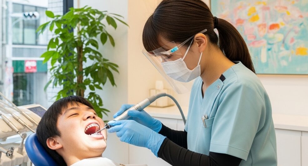 矯正治療中のクリーニングは、虫歯や歯周病を予防し、治療後の美しい歯並びを守るために不可欠です。