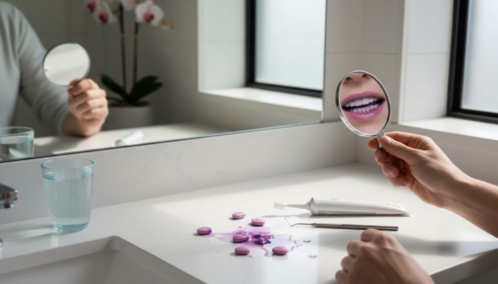 使用すると、プラークが付着している部分が赤や紫に染まり、磨き残しの部位を視覚的に確認できます。定期的にプラークテスターを使用することで、自分の磨き癖や磨き残しやすい部位を把握できます。