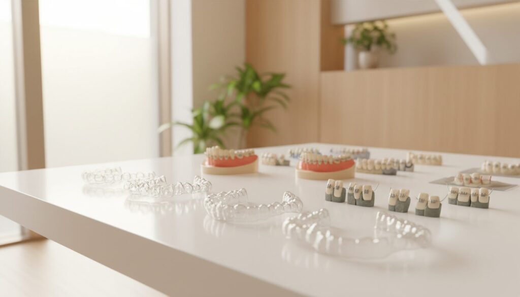 幸いなことに、近年の矯正治療は大きく進化しています。従来の金属ブラケットだけでなく、透明なマウスピース、白いセラミック装置、歯の裏側に装着するリンガルブラケットなど、目立ちにくい選択肢が増えました。それぞれに特徴があり、適した症例も異なります。