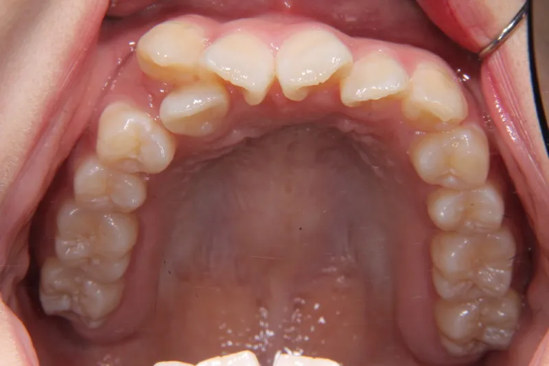 ゆがんで生えている 口が開いていることが多い(口呼吸・鼻炎) |