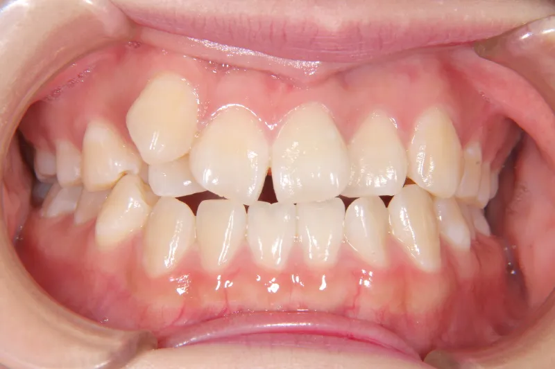 | 初診時年齢 | 高校生 (女性) | 主訴 | 前歯のがたがた・真ん中のズレ | ||||