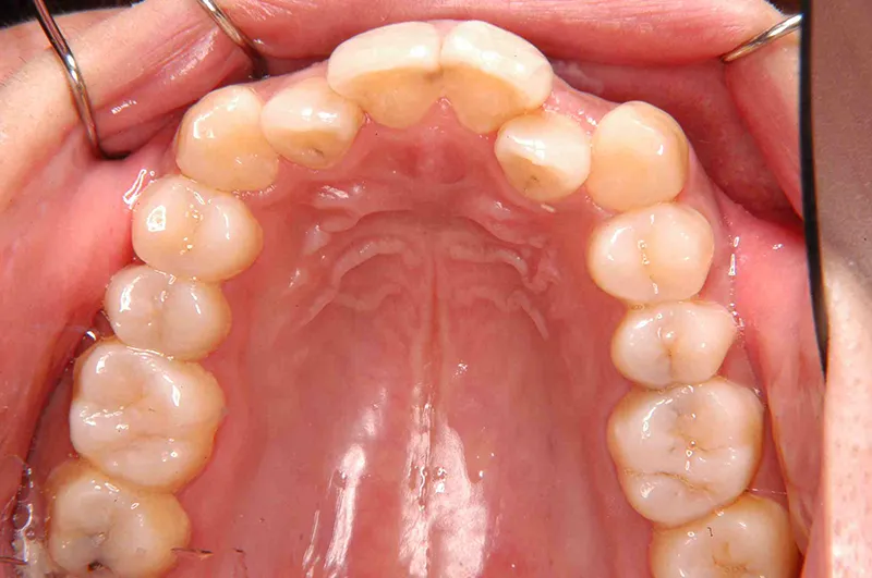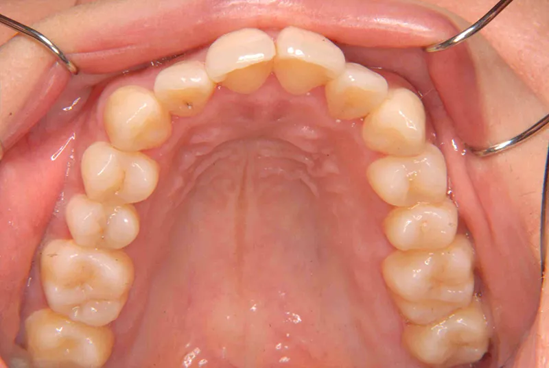 前から見えない装置での矯正を希望され、オリジナル装置で治療しました。