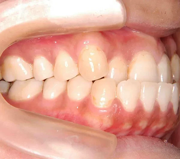受け口で噛んでいます。上の歯のガタガタもあります。