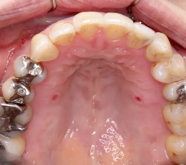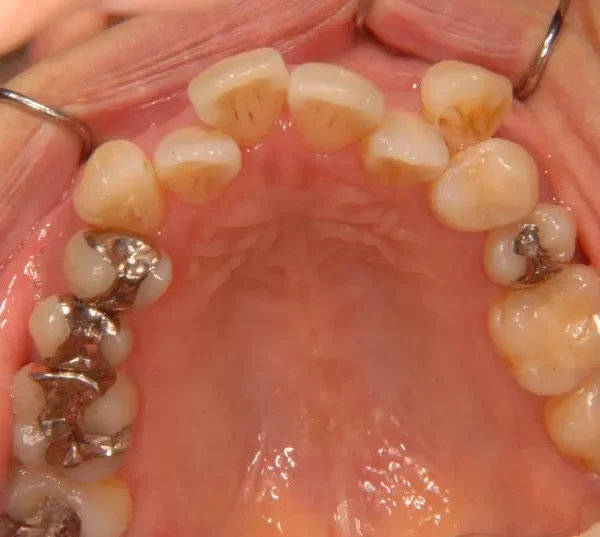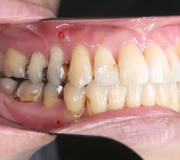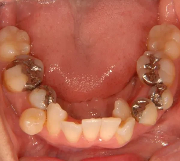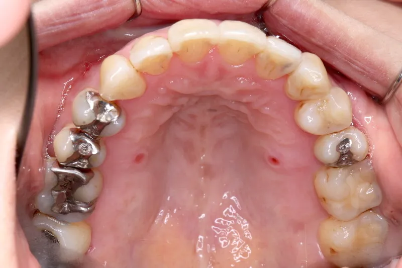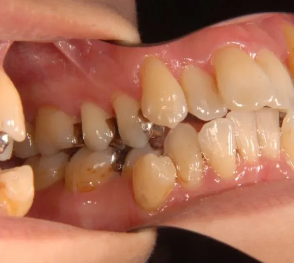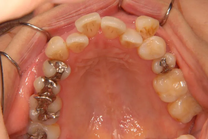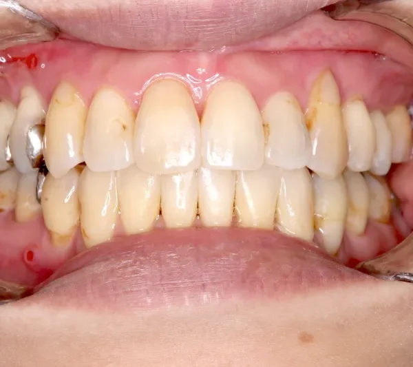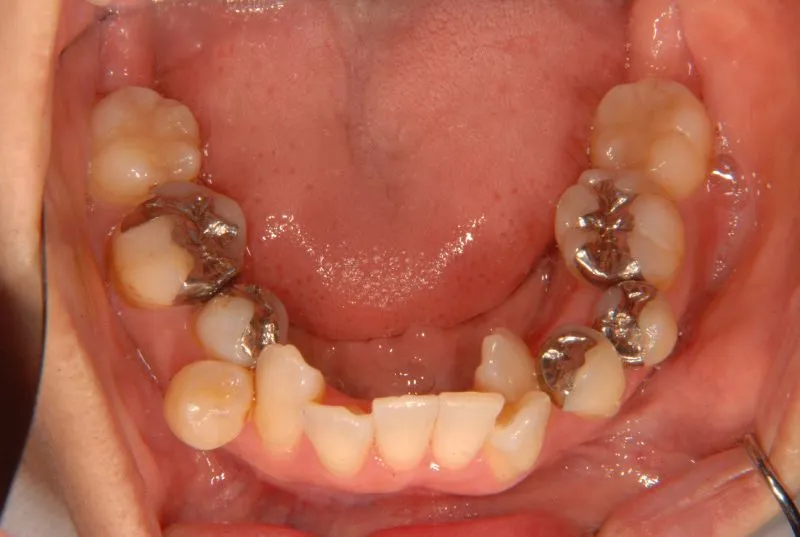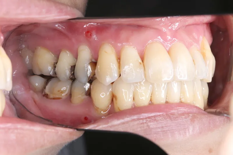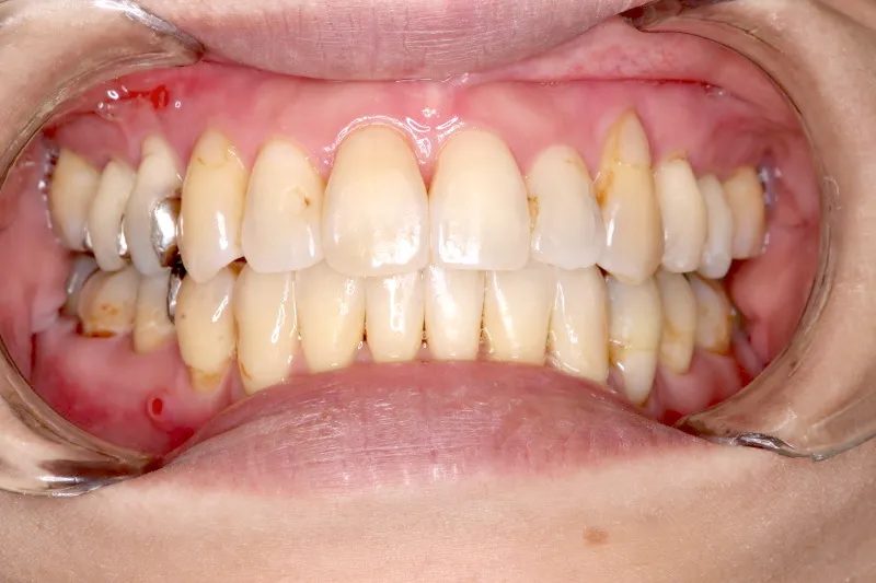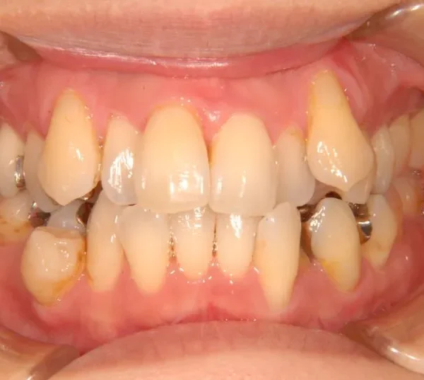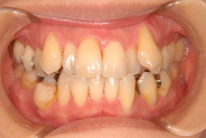 従来なら抜歯ケースですが、アンカースクリューの使用により歯は抜かずに治療することができました。