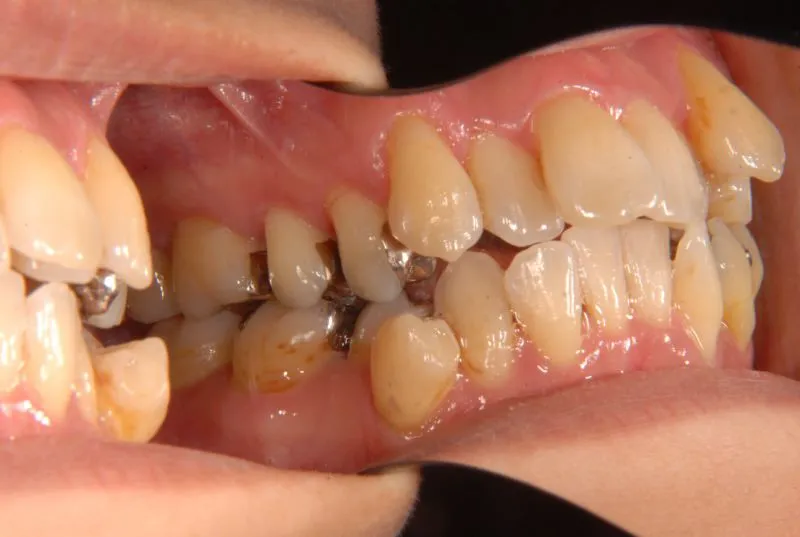 上下がたがたが大きく、何本か歯列から歯が飛び出しています。