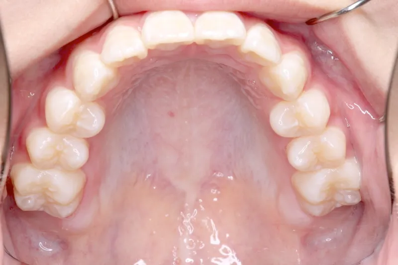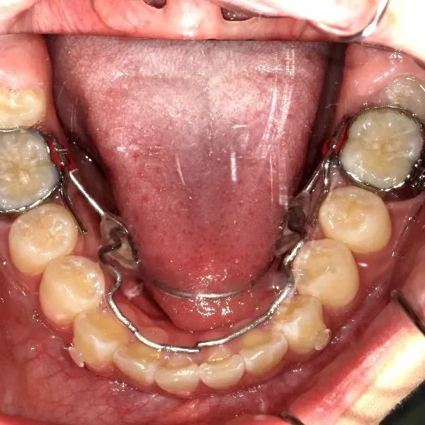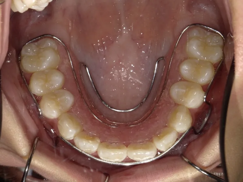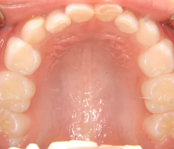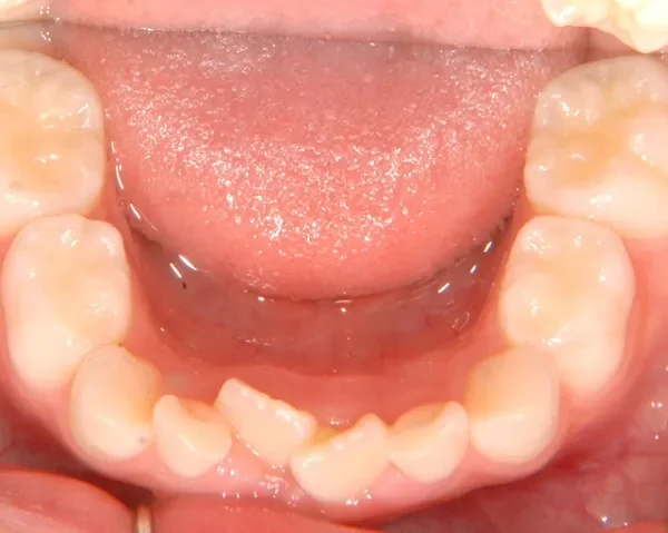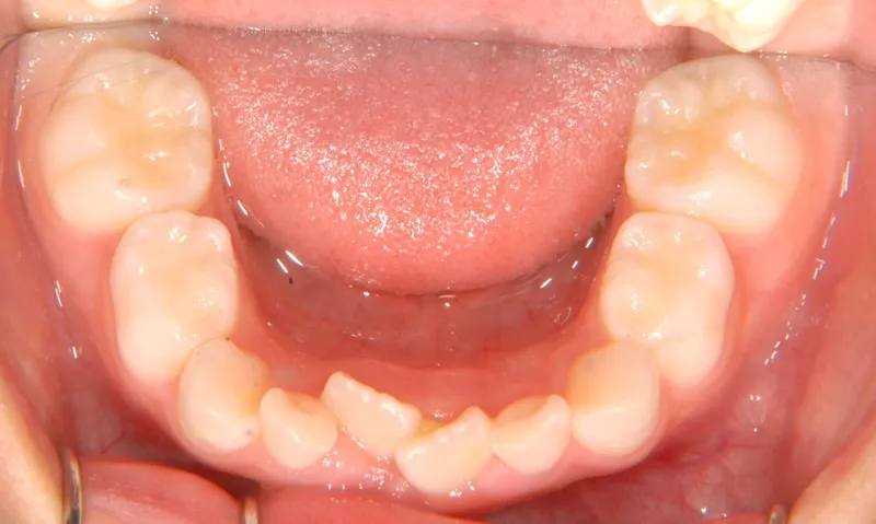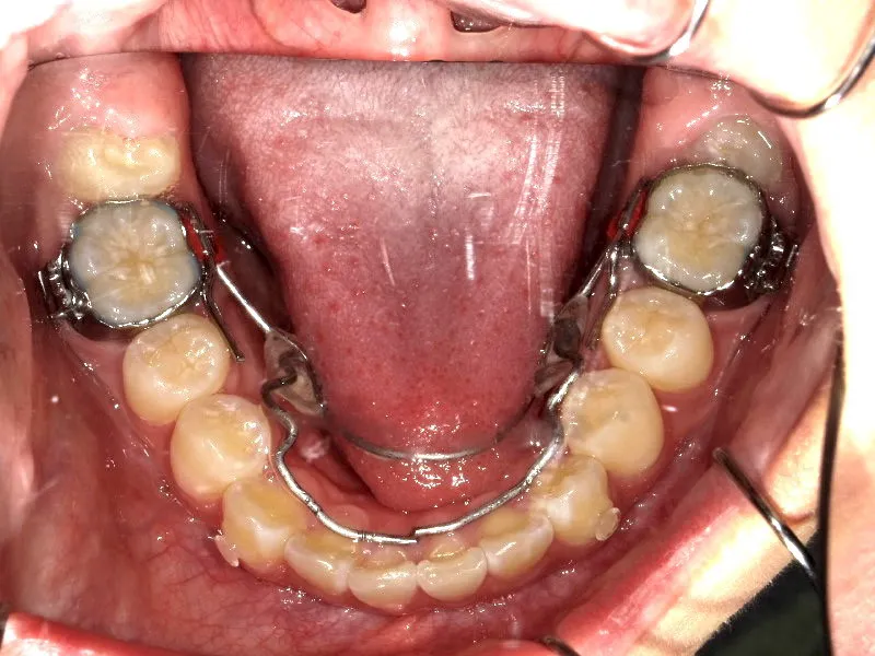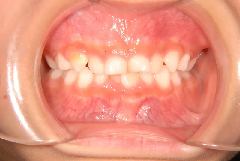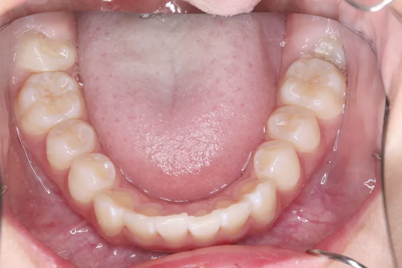 こどもの歯は下の2本しか抜けていませんが、放っておくとガタガタがきつくなるので、早い段階からの治療としました。