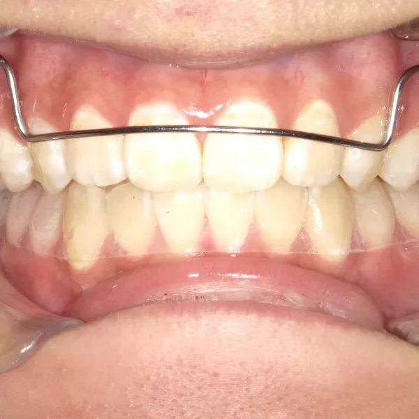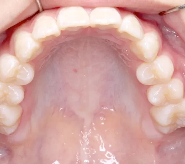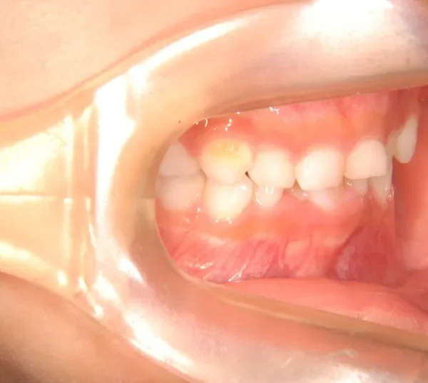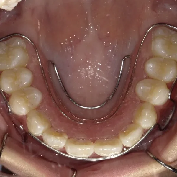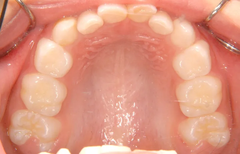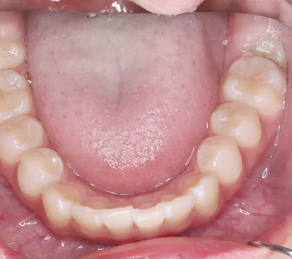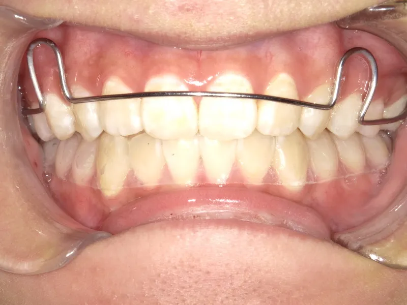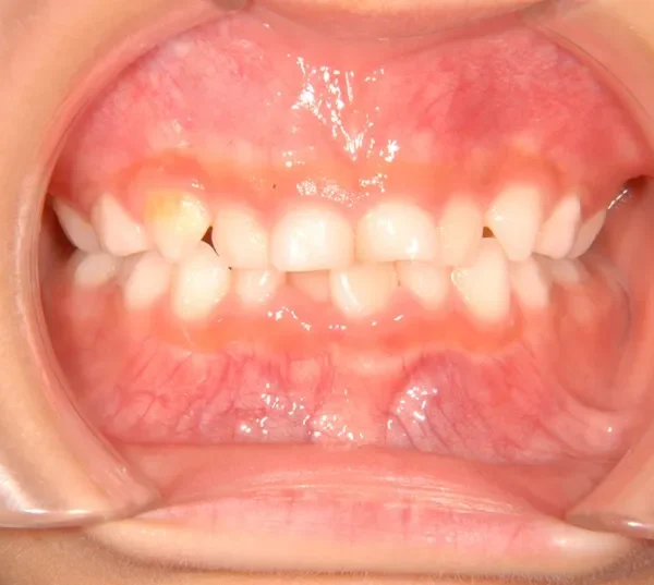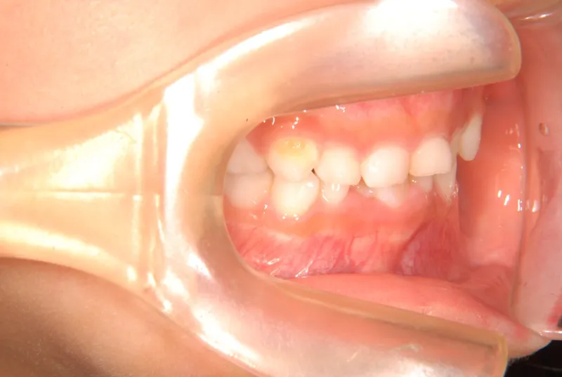 こどもの歯は下の2本しか抜けていませんが、放っておくとガタガタがきつくなるので、早い段階からの治療としました。