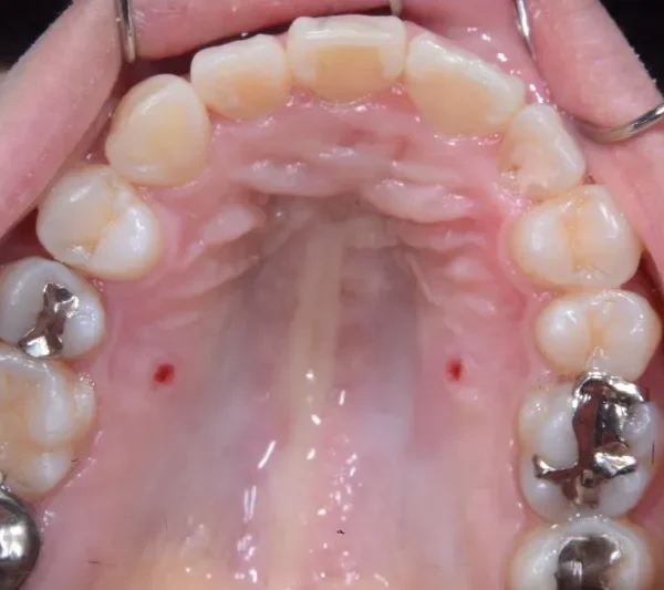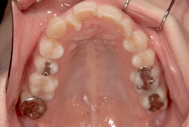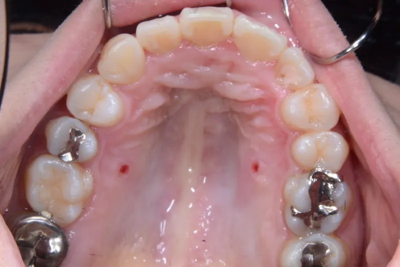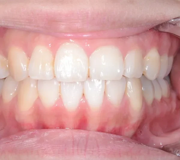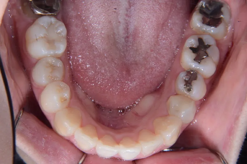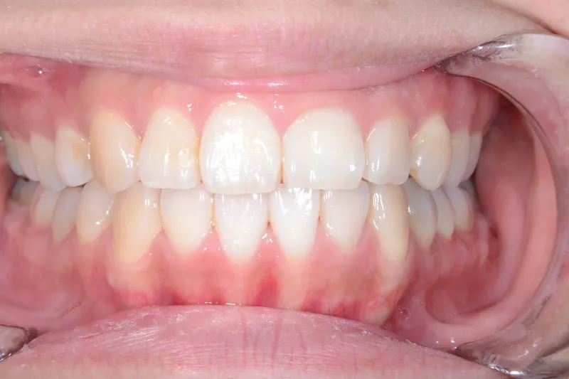 上下リンガルブラッケットで前から見えにくい装置で治療いたしました。