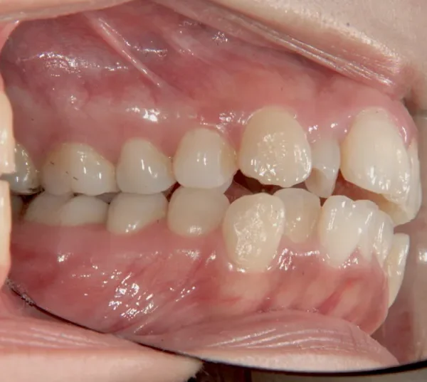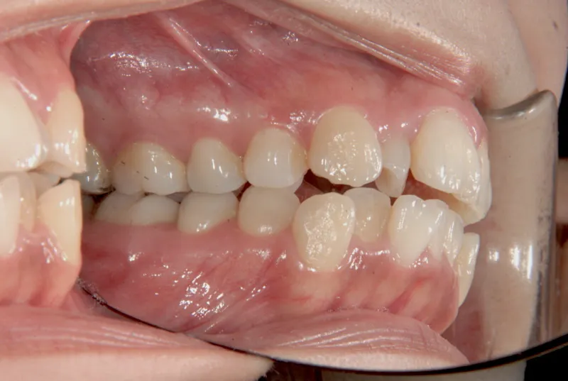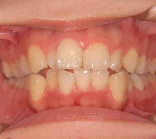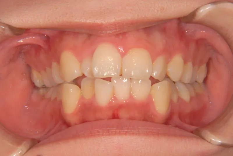 上の前歯が出気味で、上下とも歯並びがゆがんでいます。