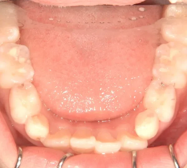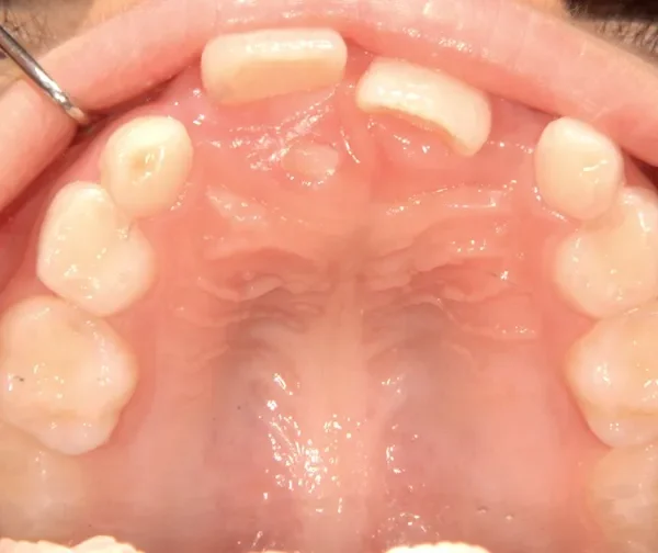 上の前歯に余分な歯があるので抜いてもらってから、前歯を押し出しながら、上下の歯並びの幅を広げて永久歯の生えてくるスペースを作っていきます。