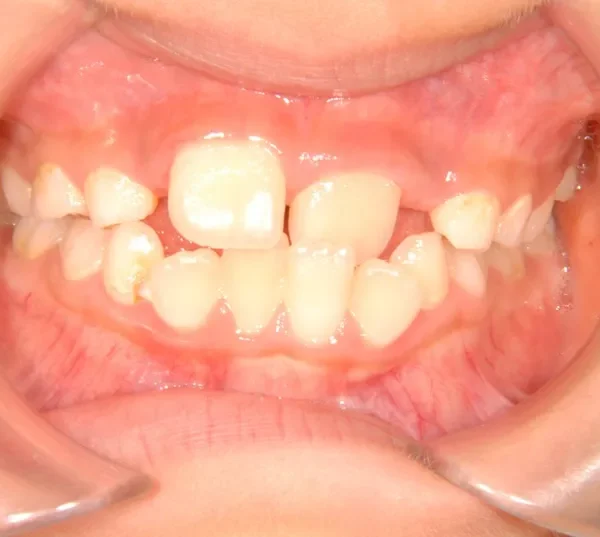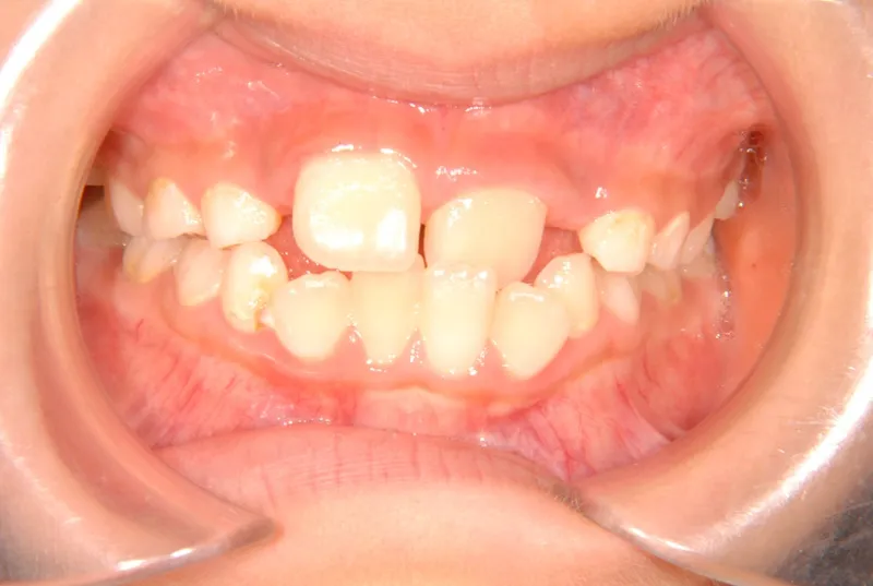 | 初診時年齢 | 小学校2年生 (女性) | 主訴 | 反対咬合・ガタガタ・余分な歯がある | ||||