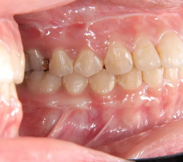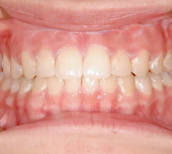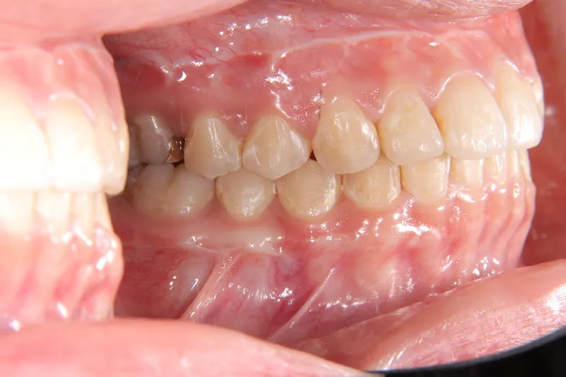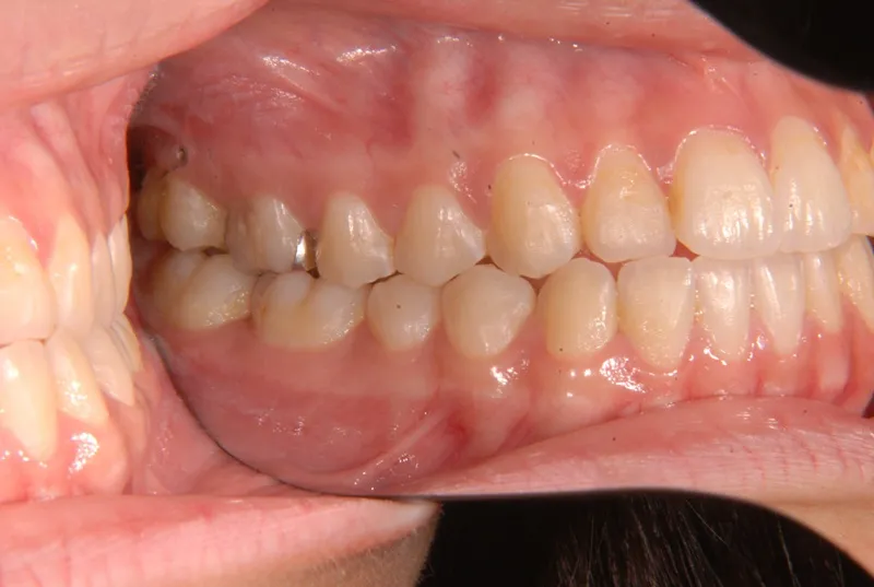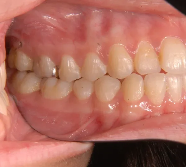 顎のゆがみが原因で噛み合わせが大きくずれています。また、顎も大きくずれています。