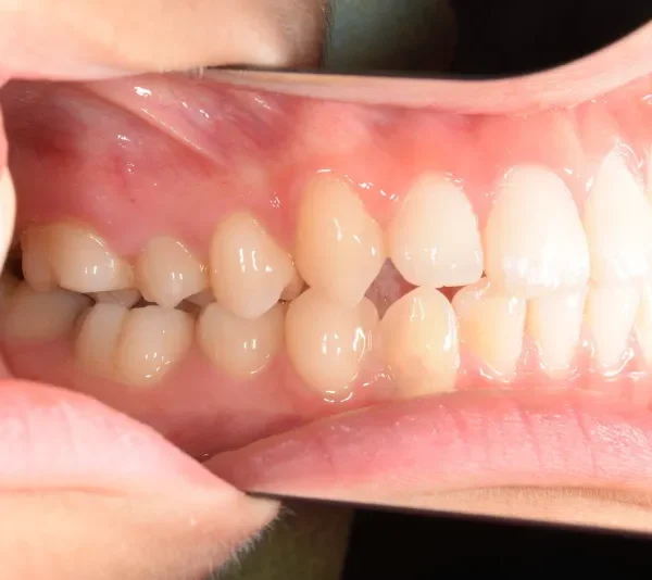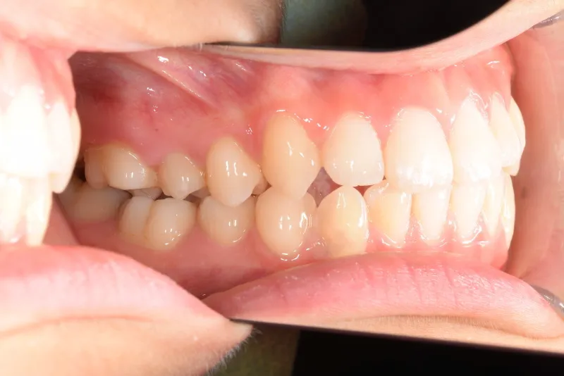 永久歯が生える隙間がない(叢生) ガタガタ・でこぼこに生えている(叢生) 出っ歯(口元が出ている/上顎前突) |