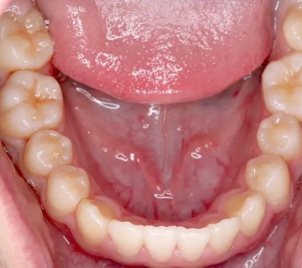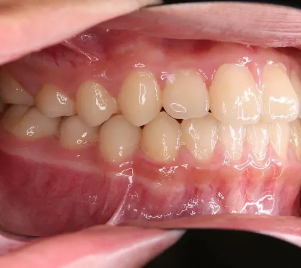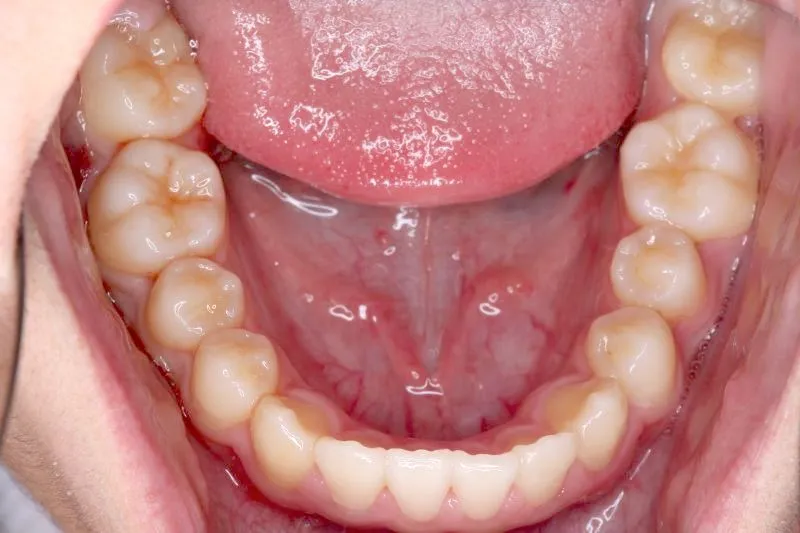 その横の歯は上の歯が下の歯の後ろにきて噛んでいる状態です(反対咬合)