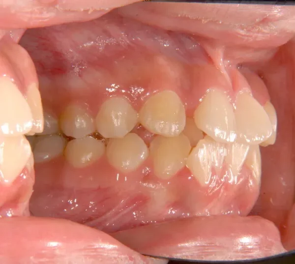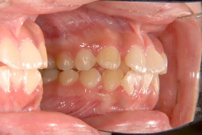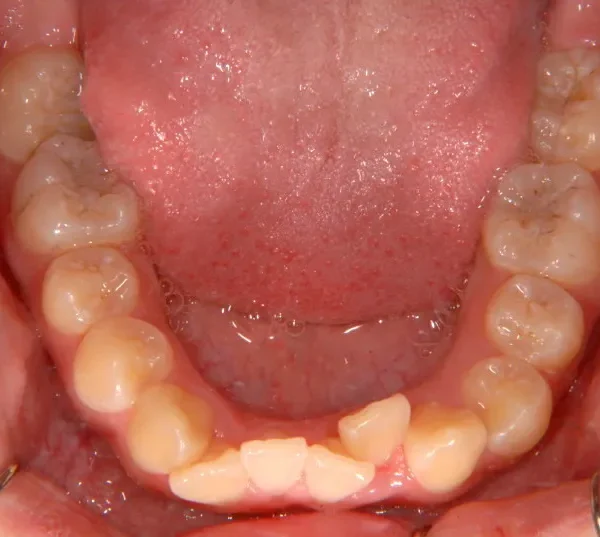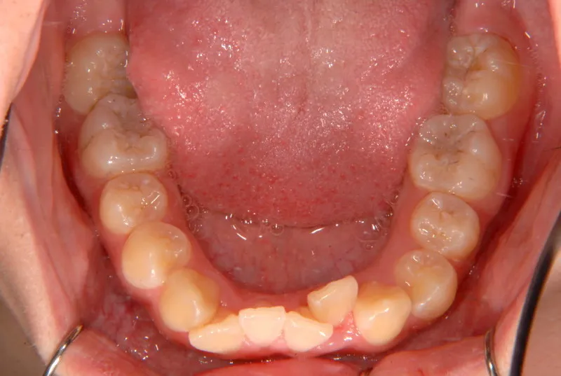 上下の歯がガタガタで噛み合わせもずれています。右下の奥歯も傾いてはえています。